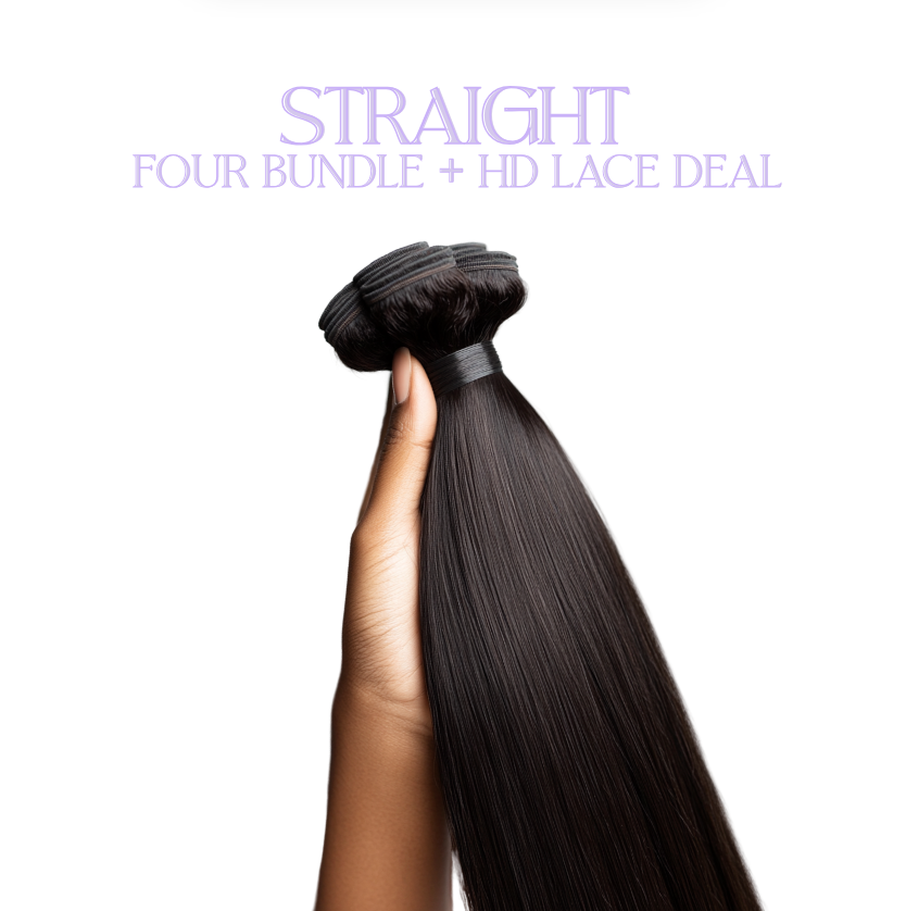Achieve a sleek, polished look with our premium Raw Cambodian Straight Hair, paired with a matching Raw HD Lace Closure/Frontal for the ultimate flawless finish. This bundle deal includes four bundles and one closure or frontal—perfect for a smooth, full install with natural straight strands.